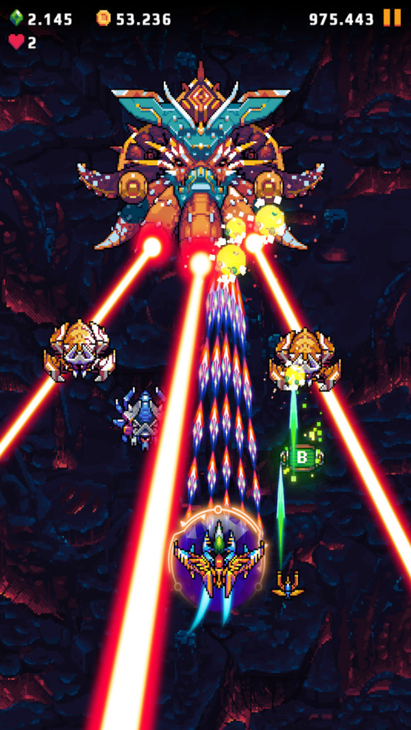 2、在太空中没有过多的支援,只有操控你的战机和辅助战机一路通关才能存活。