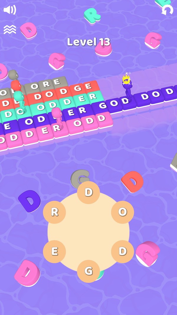 1、不断的踏踩更多的单词字母,按照不同的提示来闯关,玩家站在字母板上点击;