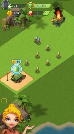 2.放置门机关、栅栏和塔楼,在地面铺沥青,攻击敌人。建造各种建筑物,提高士兵的战斗力