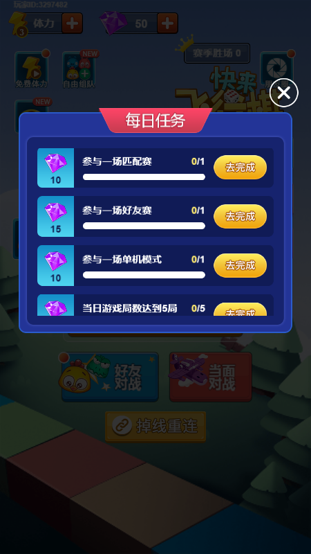 快来飞行棋小程序是一款好玩的创意小游戏,点击喜欢的角色和其他玩家们来一场刺激的飞行棋大赛,快来飞行棋小程序中不同的冒险玩法和创意休闲体验让你成功完成任务,使用你的专属道具驾驶飞机超过其他的玩家,经典的玩法乐趣无限