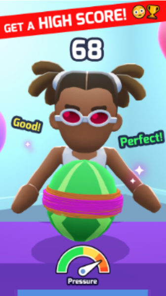 1.十分具有创意想法的游戏,玩家要做的就是将一根根的橡皮筋套在西瓜上,看看套到第几根的时候西瓜会破碎。