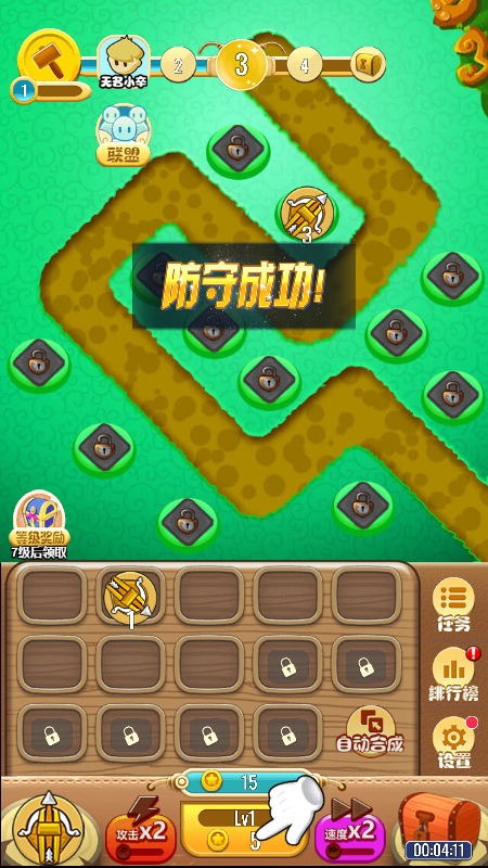 1.你可以挑战取胜不断进攻。放置关卡后可以获得武器防护,测试玩家的手速和反应能力专心挑战