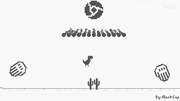 1、复古像素画风,还原谷歌浏览器离线小恐龙的经典形象,同时加入更多细节。