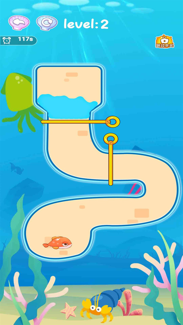 一款休闲风格的闯关冒险类游戏,游戏画风非常可爱,在游戏中你需要把水源成功引到金鱼的池子里吗,场景中还存在可怕的鲨鱼,你可以借助游戏内的岩浆来杀死他们,游戏非常内容非常有趣,不要在等待了,鲨鱼要吃掉金鱼了。