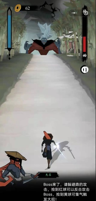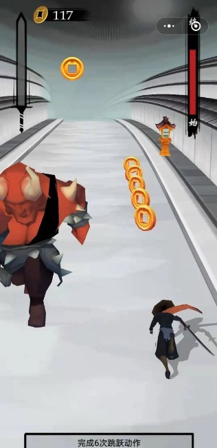 一款竖屏创新元素的手机游戏,独特的水墨画风格设计,武术主题游戏背景。玩家会控制您的骑士屋檐,跑酷冒险,但要注意各种障碍哦,一些敌人需要避免,一些小敌人直接击中它!