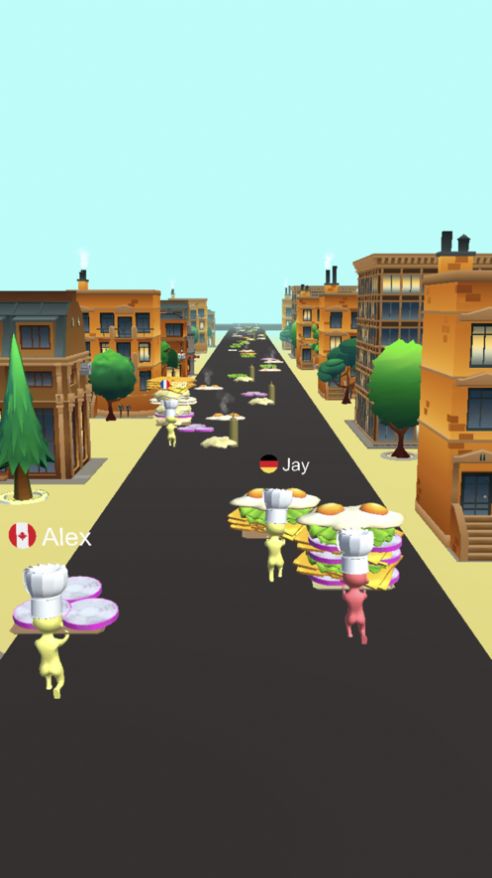 1、游戏画面非常有趣,各种各样的小人们拿着汉堡包,你追赶跑;