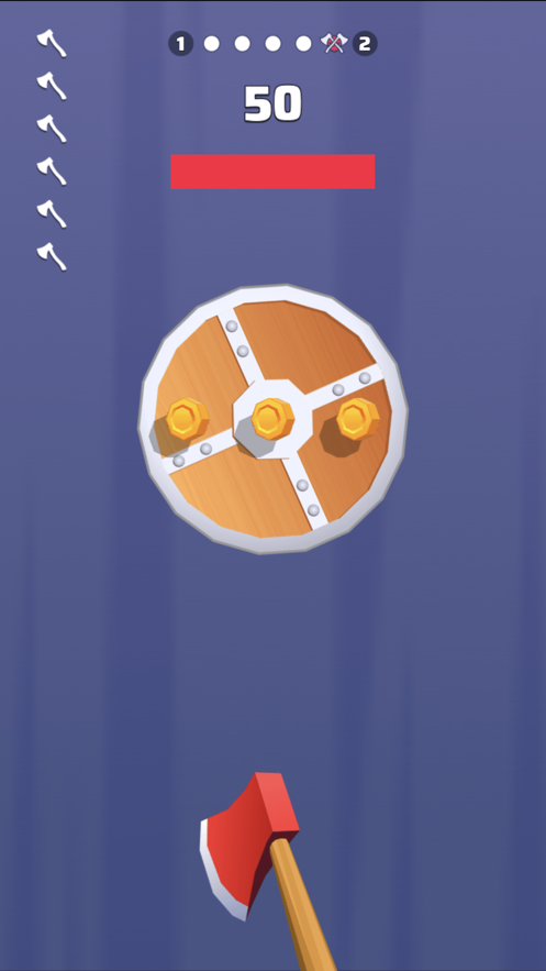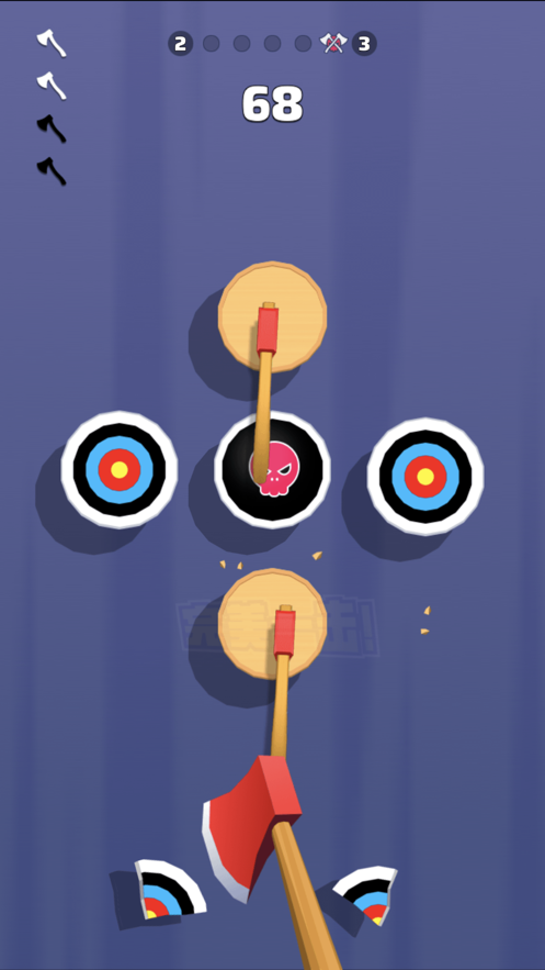 玩家需要瞄准移动中的靶子,投掷手中的斧头来作战,当关卡中的所有靶子都击碎的时候就能通关了,获取一些额外的奖励,但是小心关卡越多靶子移动的时候会变快,看看自己能坚持到多少关吧。