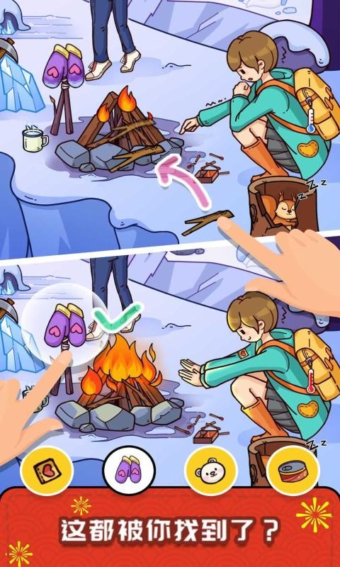 1.玩法很简单。玩家只需在每张图片中找到不同的位置即可获得加分。