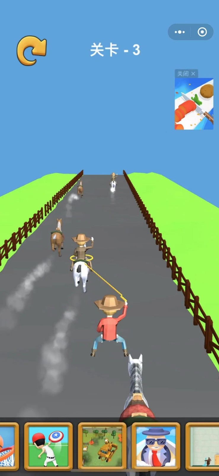 套马高手小程序是一款好玩的创意主题冒险小游戏,主要是赛马题材的跑酷冒险体验乐趣无限的冒险等你来解锁,套马高手小程序想要让自己的赛马技术非常好,就必须就必须提升自己的各种技能,玩家需求避开才能够完成更多的游戏应战,一定要有十分快的反响才能够给你带来更多见奖励