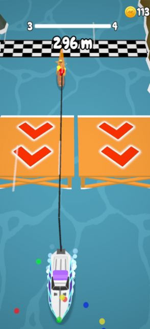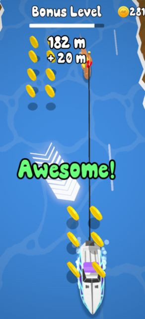 沙滩板是一款海上冲浪冒险的闯关游戏。游戏中你会踩着冲浪板被一艘快艇拴住,在海上欢乐的冒险前进,规则和跑酷游戏很像,你要躲避迎来的一切障碍,如果被撞击到或者连接的绳子被斩断了,你就失败了。