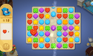 1、在三消改造益智游戏中装饰你的豪宅,三个同色抱枕排在一起就可以消掉;