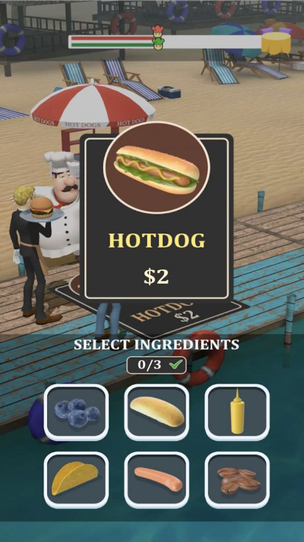 1.游戏中,你将在一场厨师大赛进行比赛,这里有着非常多的参赛者,你需要花费最短的时间做出美味的食物,快来开始你的表演。