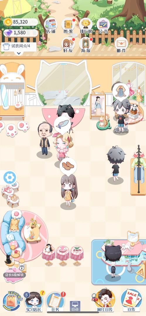 2.完成更多的任务可以让你解锁你想要的角色和稀有造型等等,还可以升级你的店铺