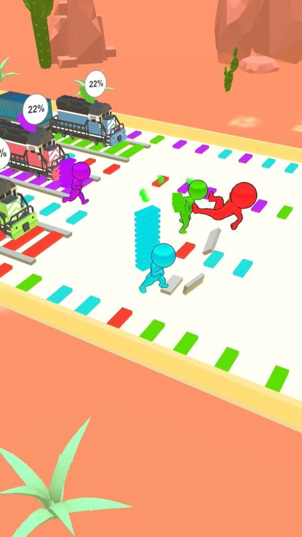 造铁轨大作战是一款好玩的趣味休闲游戏,游戏有着卡通的画风,造铁轨大作战游戏中你需要收集更多的铁轨材料来进行铺设,建造出一条完整的铁路,这样火车就可以在轨道上顺利的通行了,游戏玩起来非常的有趣,比较考验玩家的动手能力,你可以和更多的玩家进行pk,看看谁可以更好的完成火车轨道搭建的任务。