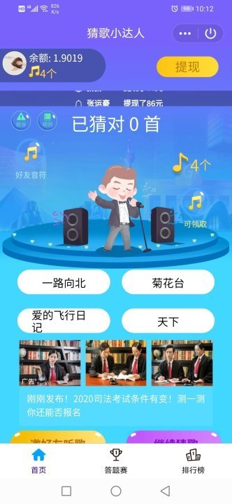1.经典流行歌谣猜歌的时间不多,回答几秒钟,参加答题游戏对玩家的心智是个考验