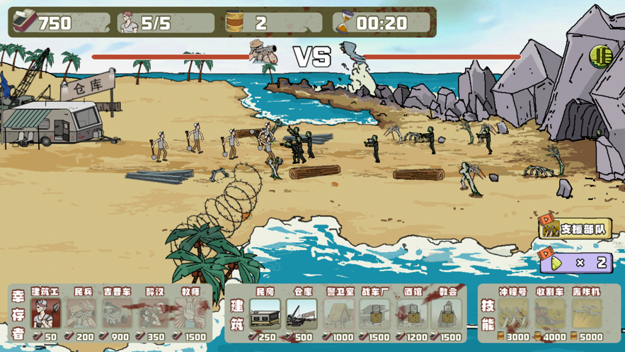 1.只有不断消灭僵尸,才能获得大量资源,迅速升级武器。