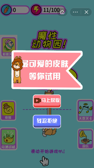 魔性动物园小程序是一款休闲的魔性冒险对战小游戏,卡通的游戏风格,充满童趣趣味无穷,魔性动物园小程序游戏的积分也就越高,游戏非常的简单好玩,很是有趣,游戏里的场景很多,玩家要注意观察,迅速的找到各种道具完成你的脖子成长,点击互动获得奖励