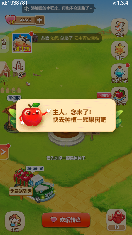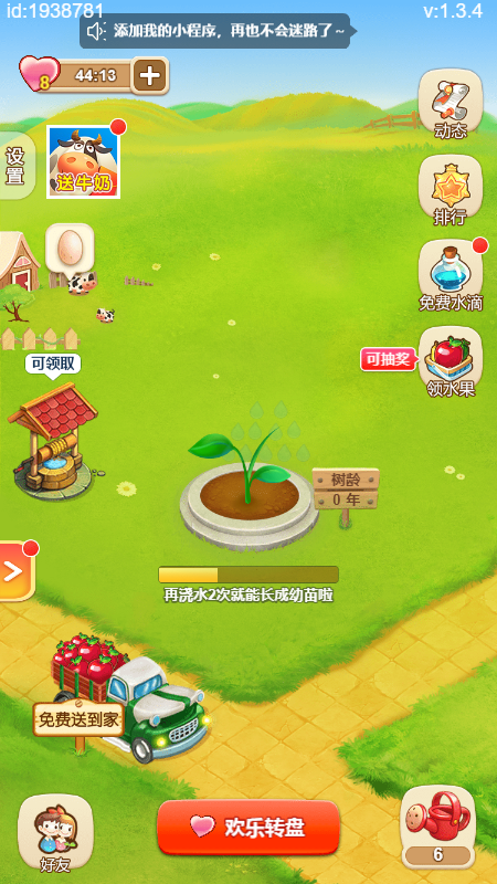 开心果树小程序是一款好玩的特色休闲小游戏,独特的养成模式新的快乐无比,有趣的农场种植水果游戏,玩家需要解锁各种不同的果树,种植更多品种的果树,开心果树小程序提高果园面积和果树生长效率将给您带来更多的效益。你也可以去朋友的果园摘成熟的水果