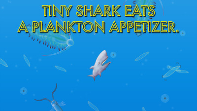 2.随着游戏的不断进行,你将通过吞食更多的小鱼来让自己变得更加的大,这样就可以体验到出鲨鱼的霸气。