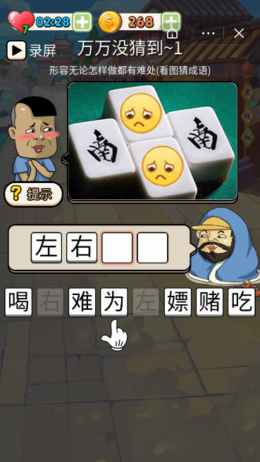 万万没想到小程序是一款好玩的成语闯关冒险游戏,全新的特色成语冒险体验,每个成语场景都非常的有趣,万万没想到小程序游戏将学习成语和孩子们喜爱的游戏方式,并顺利地聚在一起,除了学习,孩子们还可以体验游戏带来的乐趣,难度会随着关卡的提高而增加让他们劳逸结合