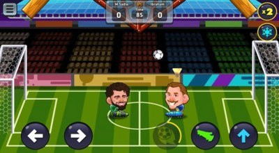 3、操作非常简单,手指单机虚拟按键控制球员移动,还可以使用头槌攻击地方球员。