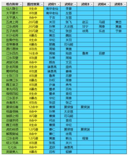 当然比如五虎将羁绊+20%闪避也是很多玩家选择的(名气加成),不过五虎将的威力要高星(平均30星)才能渐渐发挥