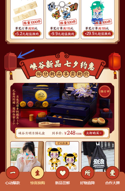 第二个在“峡谷新品 七夕约惠”的标题栏的左侧;