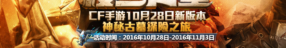 上个版本大家有没有玩够呢?现在新版本就要和大家见面了,本次名叫楼兰古墓的新版本是不是为这款枪战游戏增加了几分神秘色彩呢?在古墓当中又会遭遇怎样的惊险呢?来参加本次活动好好感受一下全新乐趣吧!(活动时间:10月28日-11月3日)